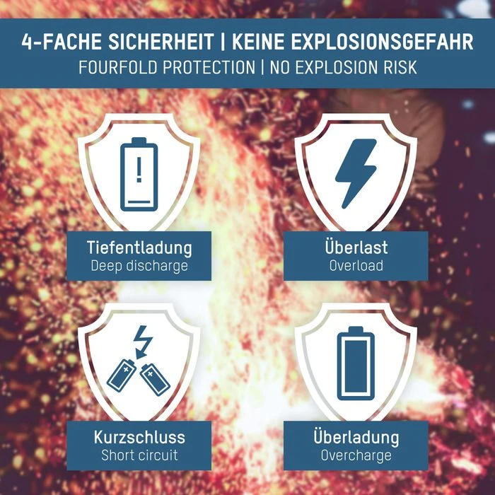 • Schutz vor Überladung, Überlast, Kurzschluss und Tiefenentladung