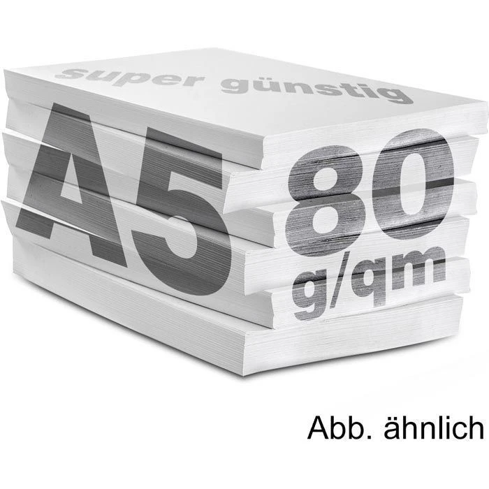 • 500 Blatt DIN A5 Papier in der Größe 148 x 210mm (Kein A4 Papier)