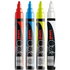 Uni-ball Kreidemarker PWE-5M, 186204, Sortiert, Rundspitze, Strichbreite 1,8 – 2,5mm, 4 Stück