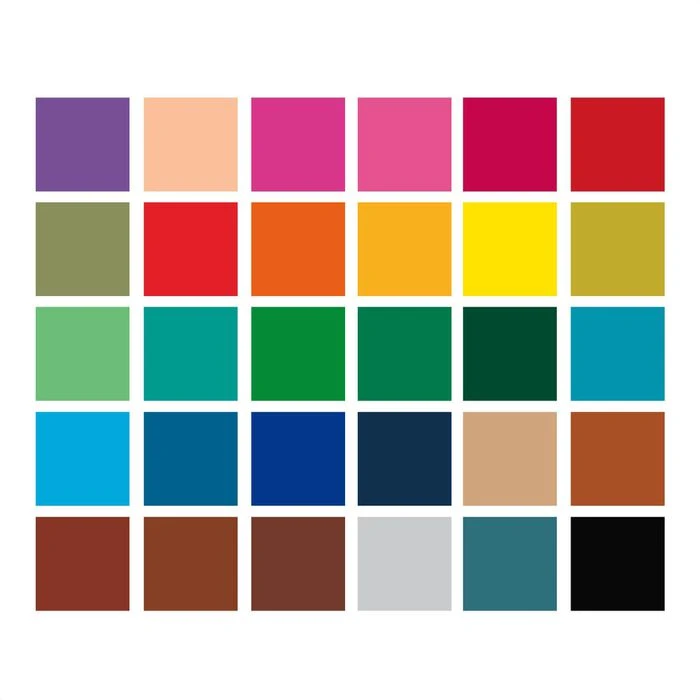 Farbvarianten: azurblau, blau, braun, cappuccino, dunkelblau, dunkelbraun, dunkelgrau, dunkelrot, eisgrün, gelb, grün, hellgrau, hellgrün, hellrosa, karmin, kobaltblau hell, laubgrün, lila, ocker dunkel, orange, pink, preußischblau, purpur, rosarot, rot, smaragdgrün, schwarz, türkisblau, ultramarinblau, violett